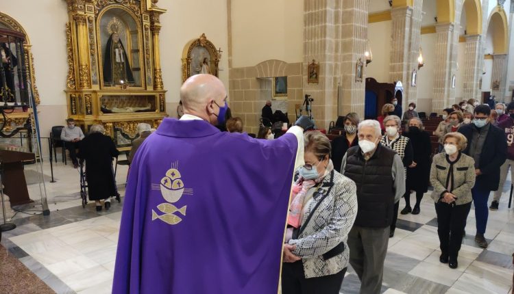 En esta ocasión, y con motivo de la pandemia del covid-19 el rito se ha tenido que adaptar, por lo que la ceniza ha pasado de imponerse en la frente a  dejarla caer sobre la cabeza de cada uno de los fieles.