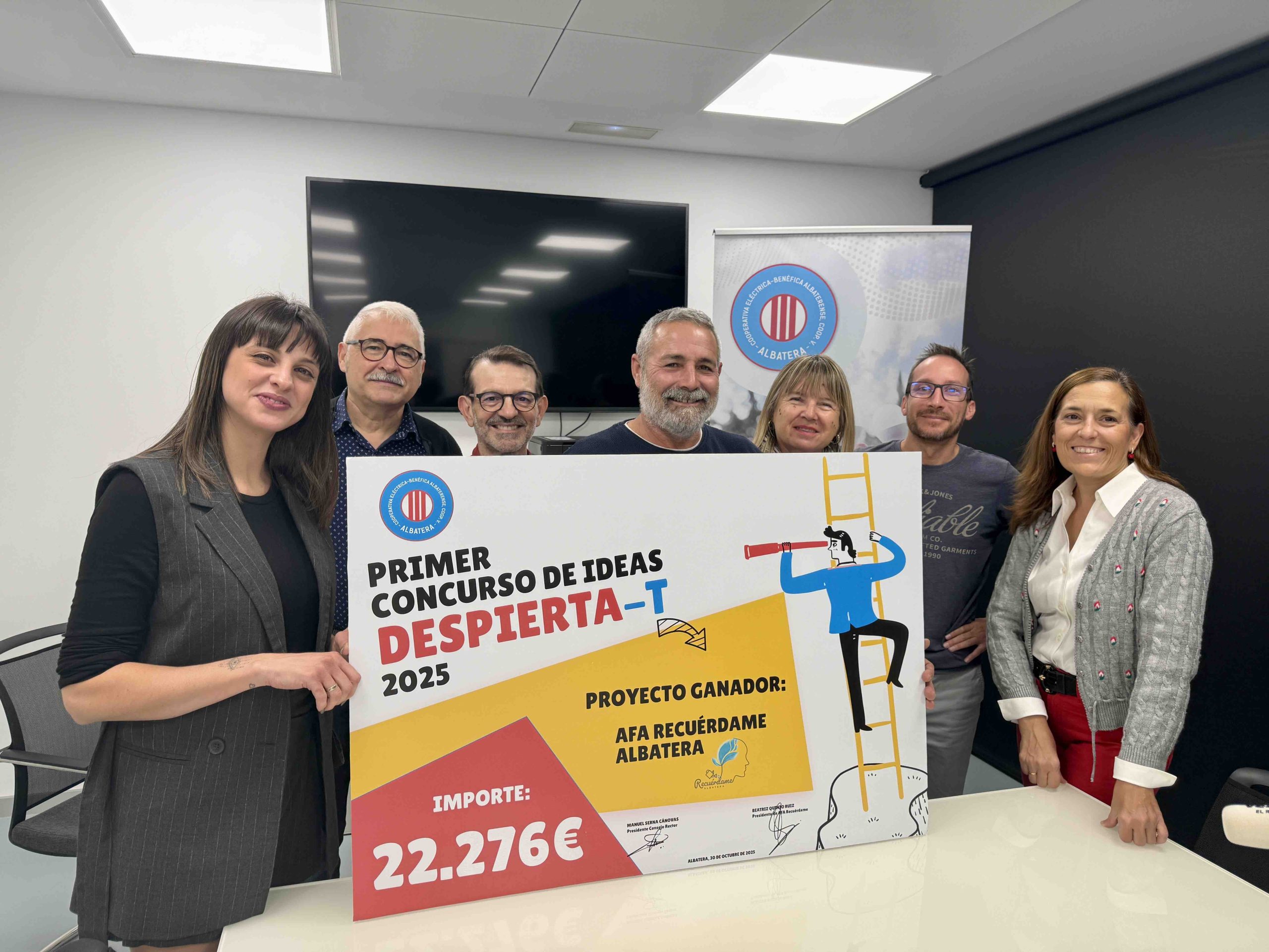 La Asociación AFA Recuérdame Albatera ha sido la ganadora del I Concurso de Ideas Despierta-T 2025, organizado por la Cooperativa Eléctrica Benéfica Albaterense, gracias a su innovador proyecto de intervención para personas mayores con deterioro cognitivo leve y sentimiento de soledad no deseada. El acto de entrega del premio se celebró esta tarde en la sede de la cooperativa.