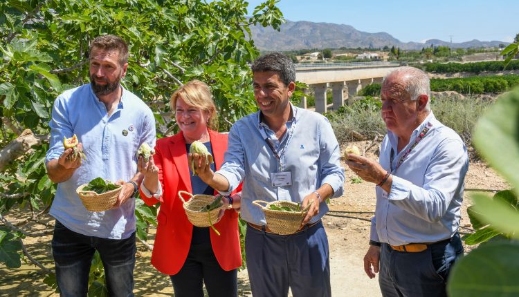 Albatera inaugura la temporada de su producto estrella con el corte de la Breva 2023 en el que han estado presentes Ana Serna, alcaldesa de la localidad, Carlos Mazón, presidente de la Diputación Provincial, Sebastián Cañadas, diputado de Desarrollo Económico, Amparo Pérez, concejala de Agricultura, Mario Berná, vicepresidente de la Asociación de Productores de la Breva de Albatera y Julius Biernet “Julius”, padrino del acto.