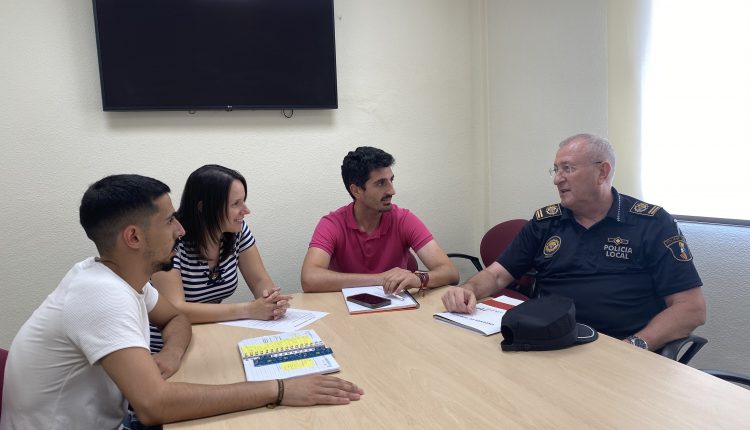 Juanma Cánovas, concejal de Sanidad, acompañado de Cristina Nieto, concejala de Fiestas, Pedro Serna, jefe de la Policía Local de Albatera y José Miguel Santos, vicepresidente de la Federación de Moros y Cristianos de Albatera, han mantenido una reunión informativa para coordinar y llevar acabo el dispositivo de seguridad ante la llegada de los días claves de las fiestas patronales.