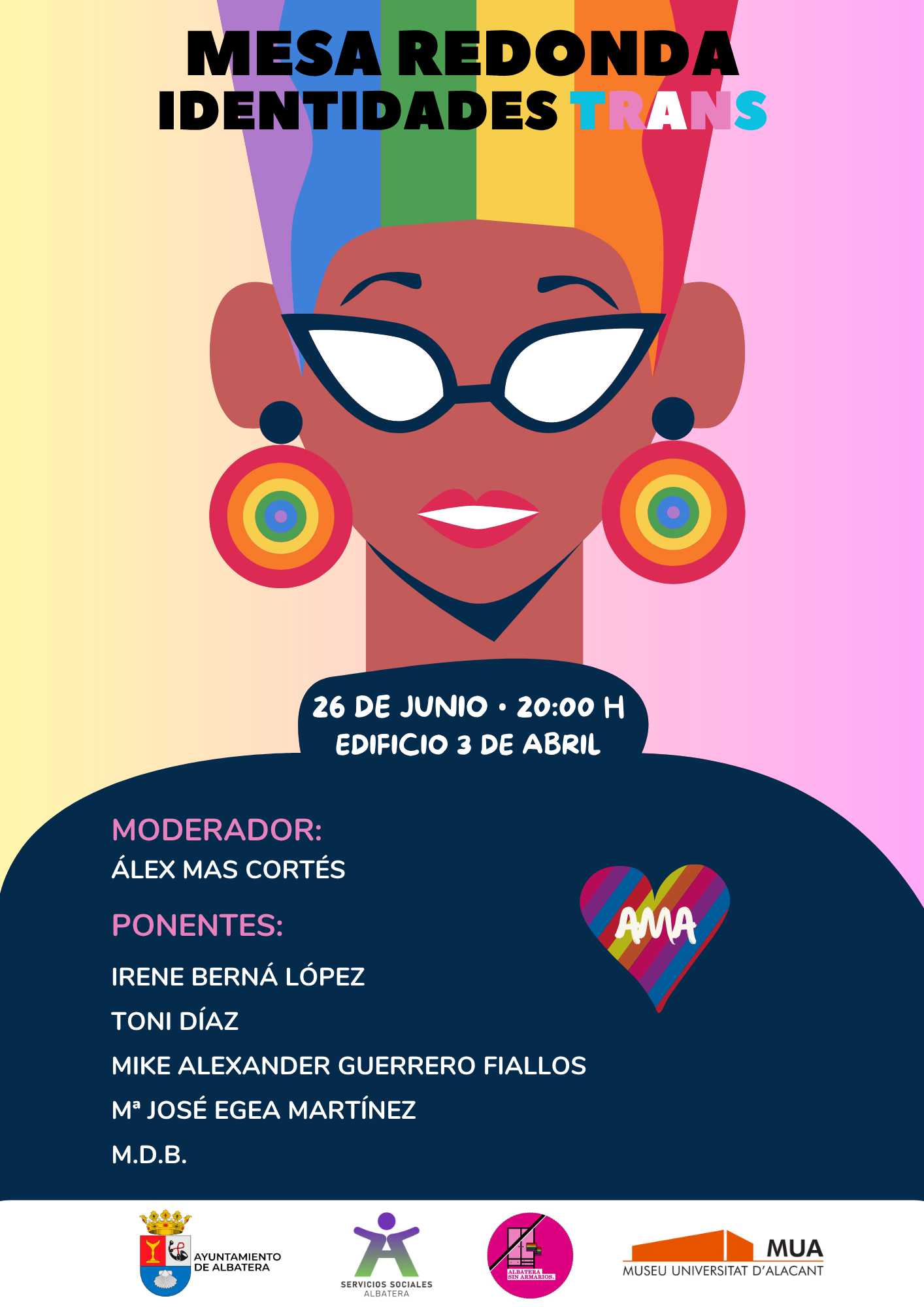 Por otra parte, el jueves, 26 de junio, a las 20:00 horas, el Edificio 3 de Abril acogerá la Mesa redonda: “Identidades Trans”.