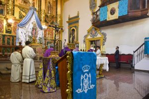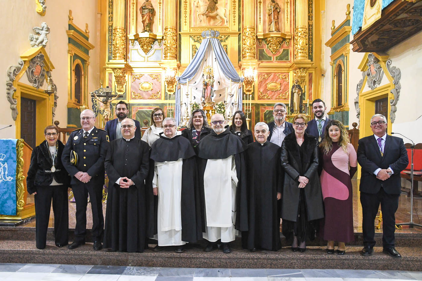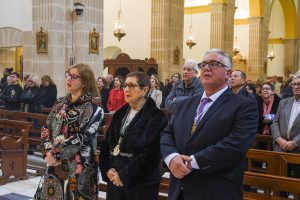 La celebración tuvo lugar en la Parroquia de Santiago Apóstol, donde la imagen de la Virgen presidió el acto desde el altar mayor en un día muy especial para los fieles y miembros de la Hermandad. La conmemoración recuerda aquel 7 de marzo de 1651, fecha en la que se firmó en Valencia el acta fundacional de la Cofradía del Santísimo Rosario “del lugar de Albatera”.