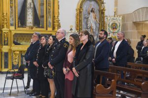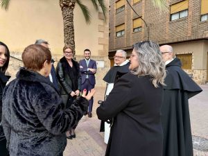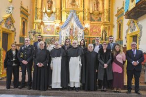 Durante la ceremonia también participaron representantes municipales. La alcaldesa de Albatera, Ana Serna, hizo entrega a Fray Jesús Díaz Sariego de una reproducción de la fachada de la Parroquia de Santiago Apóstol como muestra de agradecimiento por la concesión de este reconocimiento a la Hermandad.