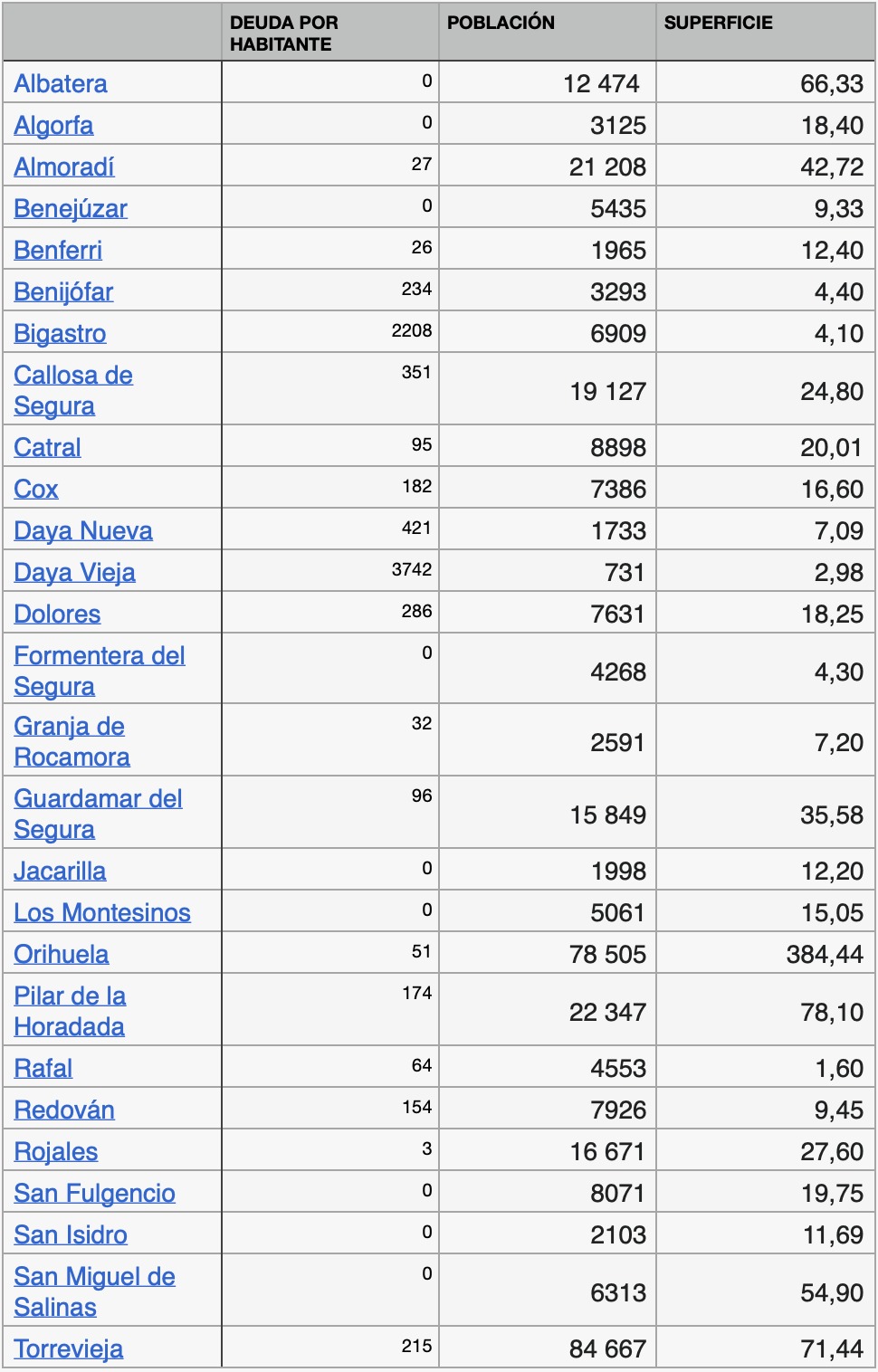 Estos son los datos de deuda pública de los ayuntamientos de la Vega Baja