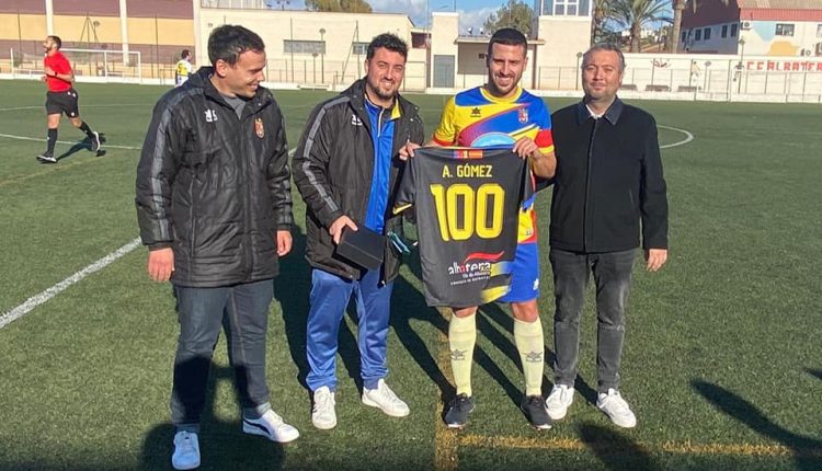 Alejandro Gómez Martínez, jugador del C.F Albatera Sporting, se corona como el máximo goleador histórico del club. Por ello, el club de fútbol realizó ayer un acto de reconocimiento al jugador, el cual, ha superado la barrera de los 100 goles en menos de cinco temporadas y media.