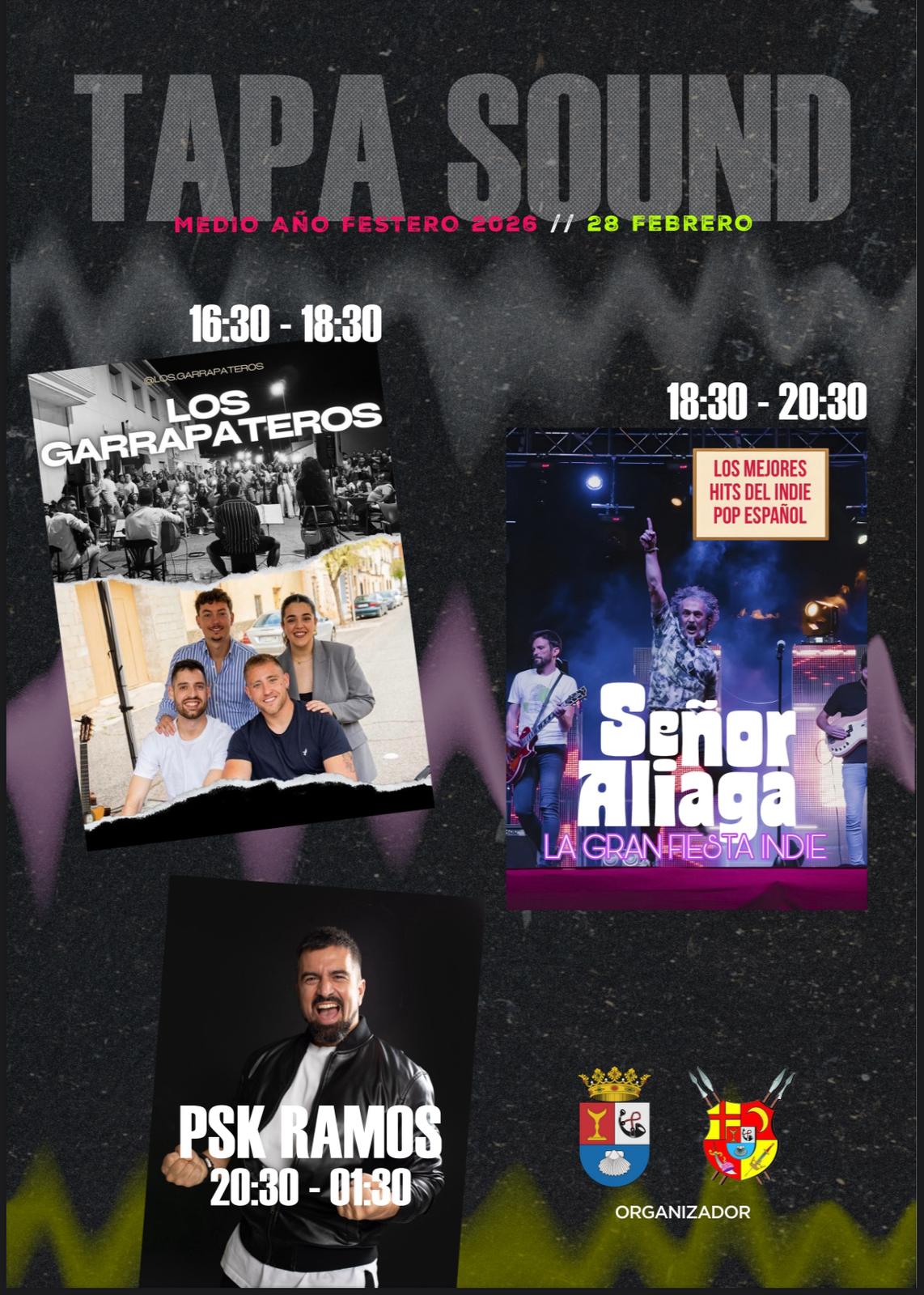 La jornada continuará en el Parque de la Huerta con la comida de hermanamiento y, a partir de las 16:30 horas, comenzará el Tapa Sound con actuaciones en directo de los grupos Garrapateros y Sr. Aliaga, finalizando la noche con la sesión del DJ PSK Ramos.