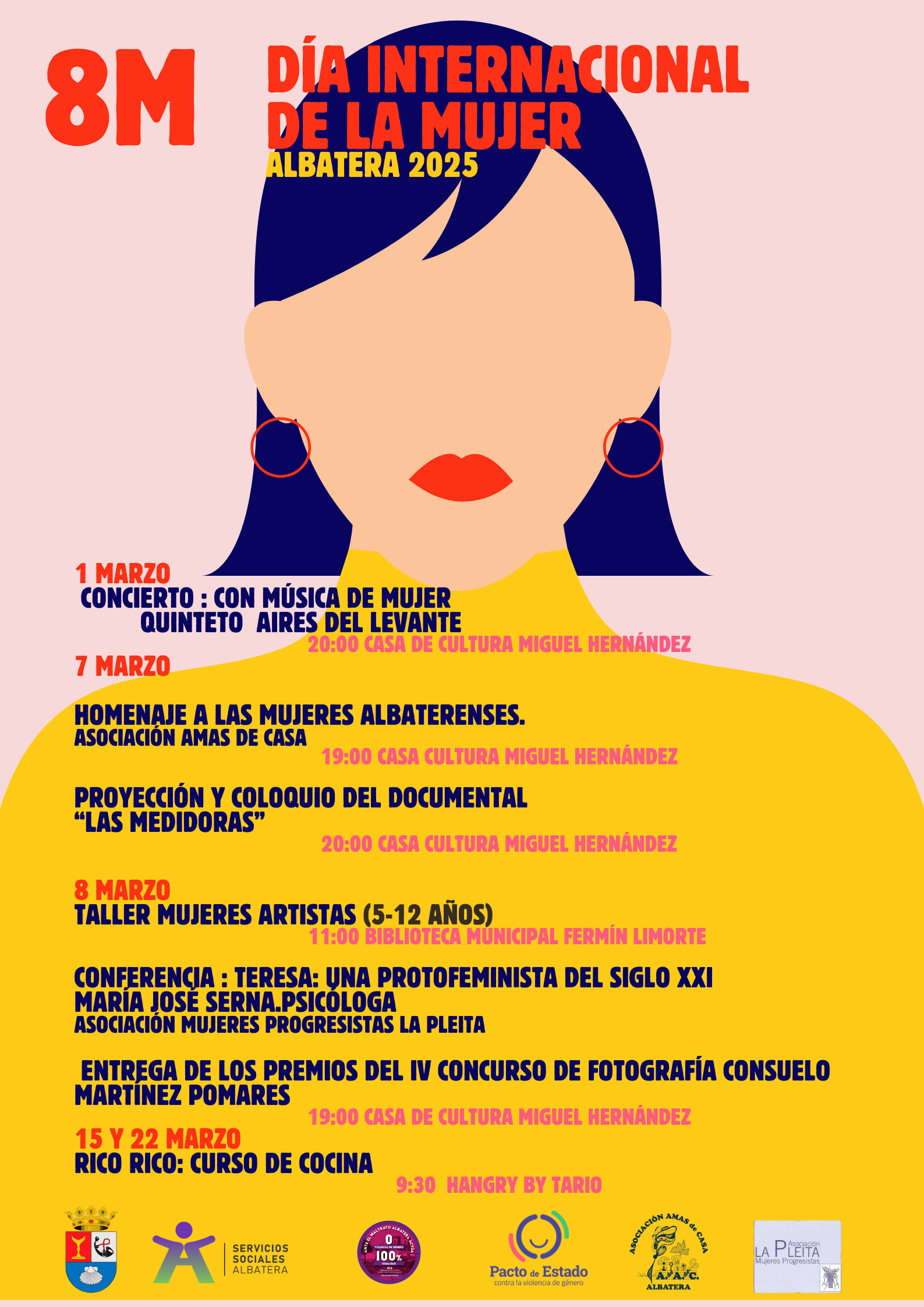Como cada mes de marzo, el Ayuntamiento de Albatera desde la concejalía de Igualdad, organiza las jornadas para conmemorar el Día Internacional de la Mujer. Este año, desde el 1 hasta el 22 de marzo el municipio ofrecerá conciertos, talleres infantiles, cursos de cocina y otros actos fundamentales que engloban las Jornadas del 8M.
