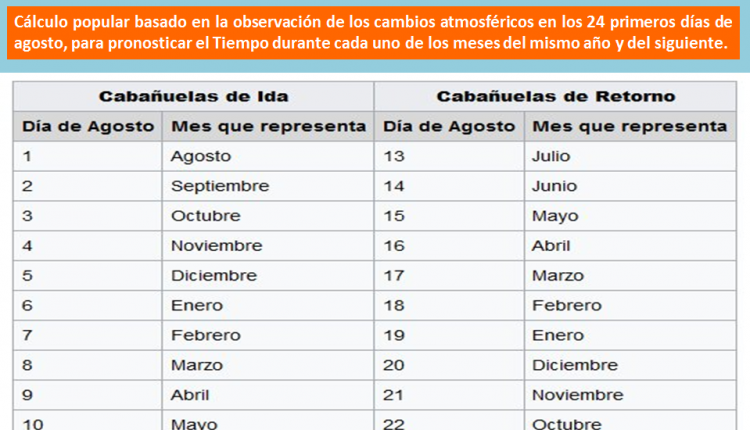 Las cabañuelas comienzan tradicionalmente el primer día del mes de agosto. Es un método por el cual tras observar el tiempo durante los 24 primeros días de agosto se predice las condiciones climatológicas para el resto del año.Hemos consultado a nuestro colaborador y meteorólogo de cabecera, Pedro Gómez, director de Meteorihuela, que nos informa de que este “es un método de predicción del tiempo que carece de rigor científico pero que está muy arraigado en nuestra zona”.