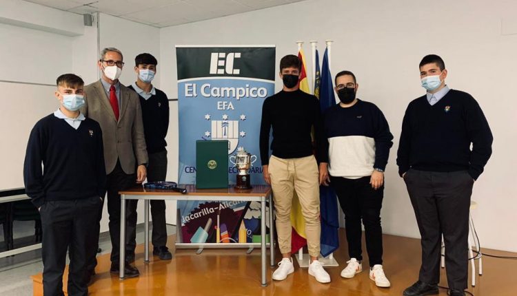 Alejandro Manzanera Pertusa, una de las promesas del tenis español, natural de Almoradí y alumno del Campico de un grado superior, ha podido charlar con los alumnos de 3º y 4º de ESO a través de una entrevista realizada por los alumnos de la Radio Escolar El Campico (REC). En la misma, los alumnos han repasado su trayectoria en el tenis profesional desde su paso por la “Caja Mágica” (Madrid), Open USA y ha hecho entrega de su raqueta al director del centro y mostró el trofeo que ganó en Wimbledon esta temporada con la selección española.