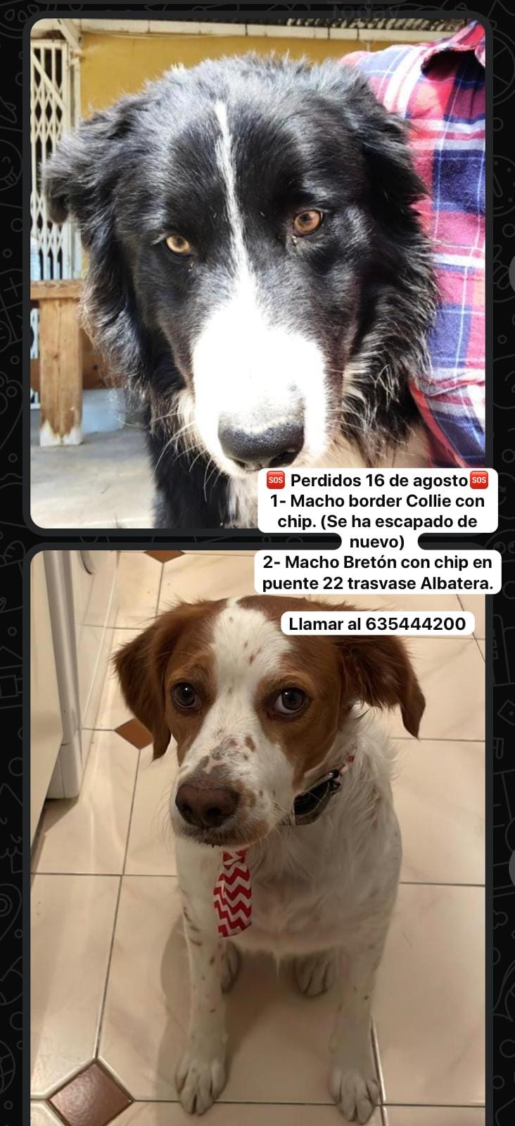 Una vez más, hacemos un llamado a todos los vecinos y caminantes de la zona: ¡por favor, corran la voz! Cualquier pista que pueda llevar a Chase y su compañero de aventuras de vuelta a casa es de gran ayuda. Ambos perros son amigables, aunque probablemente estén disfrutando de su «paseo libre» por la Sierra de Albatera.