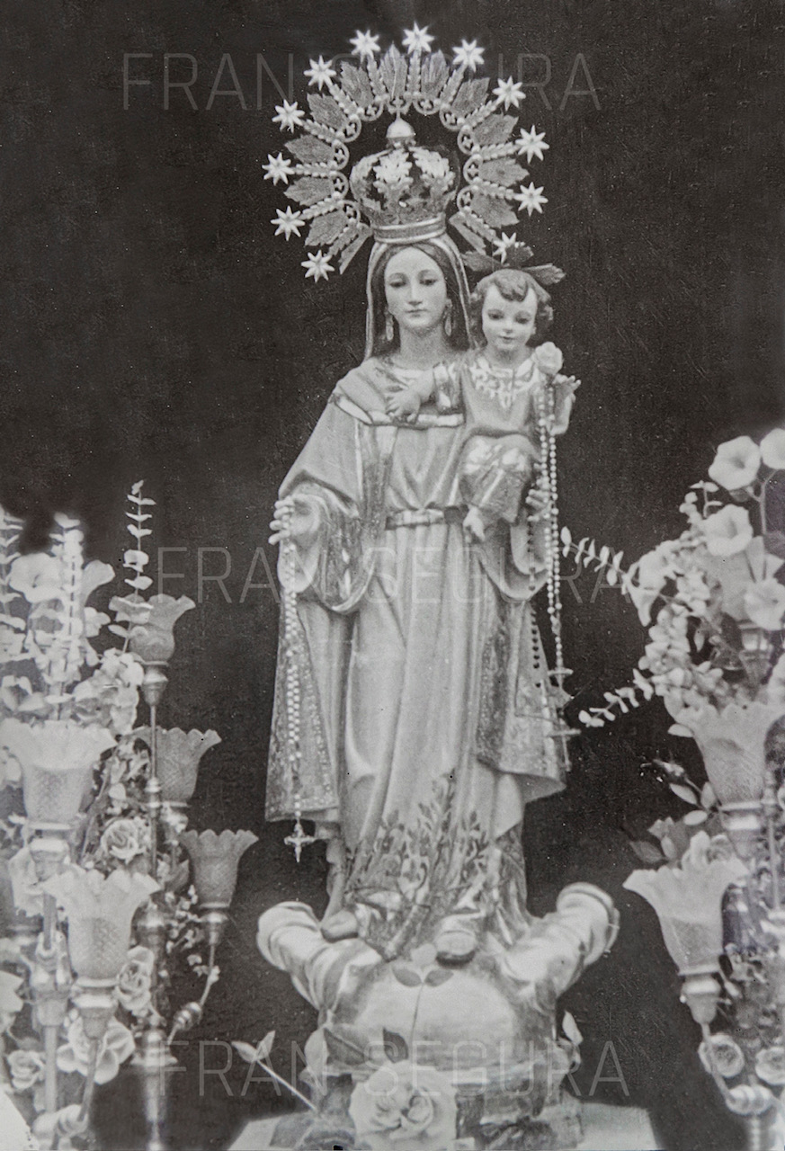 Finalizada la contienda, el 1 de mayo de 1939 se reúne la Junta de la Cofradía presidida por el entonces párroco Don Manuel Serna Serna y Don Juan Serna Serna, hermano mayor, a fin de reorganizarla y reconocer los desperfectos “de que había sido la ermita de nuestra Señora del Rosario encontrando en estado lamentable dicho santuario con las faltas de la virgen, altares destruidos…”.(3)