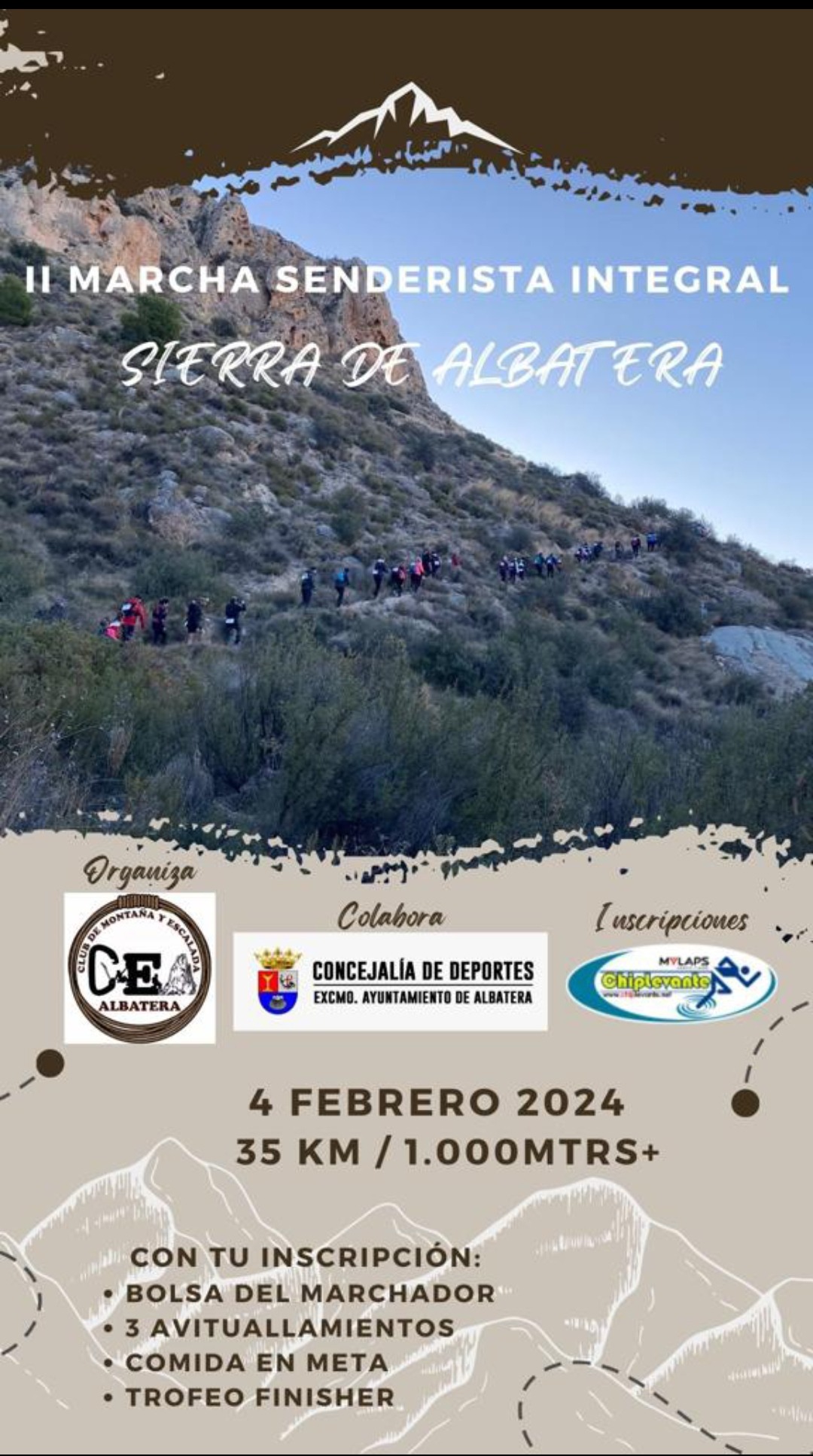 El domingo, 4 de febrero, Albatera acoge la II Marcha Senderista Integral Sierra de Albatera, una prueba en la que participarán más de 100 senderistas