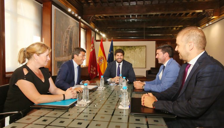 El presidente de la Diputación de Alicante, Carlos Mazón, se ha reunido esta mañana con el presidente de la Región de Murcia, Fernando López Miras, para analizar la situación hídrica del sureste español y fijar estrategias comunes en defensa de los intereses de los regantes de ambos territorios. Tal y como han explicado ambos tras su primer encuentro institucional, es “urgente” hacer frente común a la decisión del Ministerio de Transición Ecológica de excluir a los regantes alicantinos y murcianos de las decisiones que se tomen en la Comisión de Explotación del trasvase Tajo-Segura.