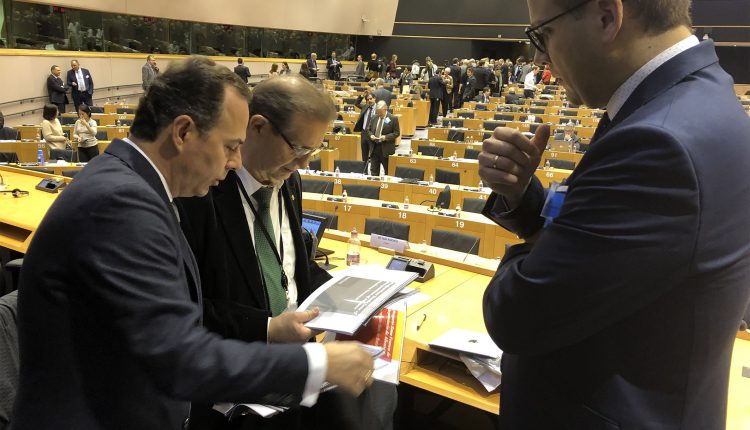 Los vicepresidentes de la Diputación de Alicante Carlos Castillo y Adrián Ballester han participado en el Parlamento Europeo en una reunión impulsada por FERRMED, la asociación empresarial o ‘lobby europeo’ que defiende el Corredor Mediterráneo, para analizar la conexión ferroviaria del continente europeo con el asiático, un objetivo que este grupo plantea para antes de 2030.
