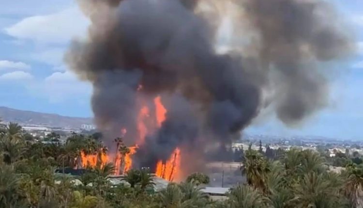 Incendio de palmeras y matorrales en los Viveros de Albatera