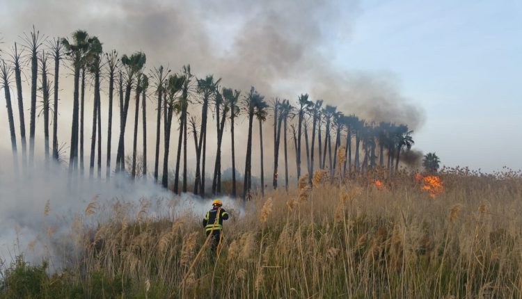 Se comprueba por parte de la Policía Local de la veracidad de las llamadas y se procede a coordinar la actuación a través del 112 con Bomberos, desplazándose a lugar del incendio la dotación de bomberos de Crevillente y extinguiendo el incendio, que ha afectado a unas 80 palmeras, sobre las18:30h.