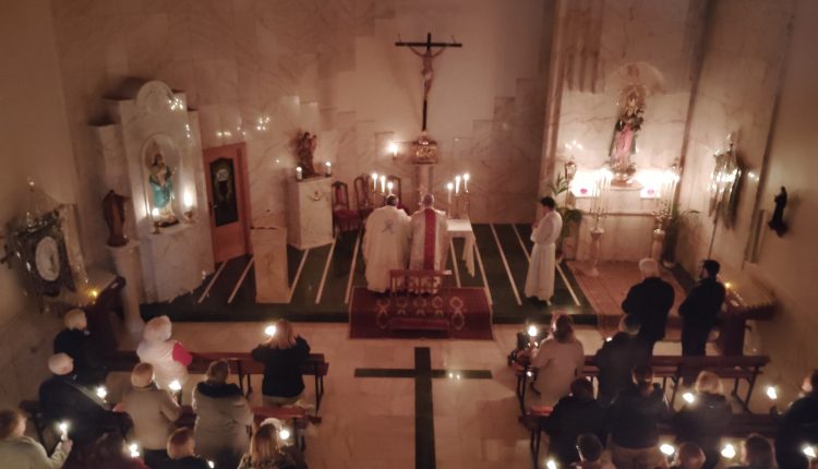 La misa se desarrolló antes del amanecer, con el templo completamente a oscuras y alumbrado únicamente por velas, siguiendo la práctica que caracteriza esta antigua tradición católica. El nombre de la celebración procede de la antífona latina “Rorate coeli” —“Cielos, lloved”—, que expresa la esperanza del pueblo creyente ante la llegada del Salvador.
