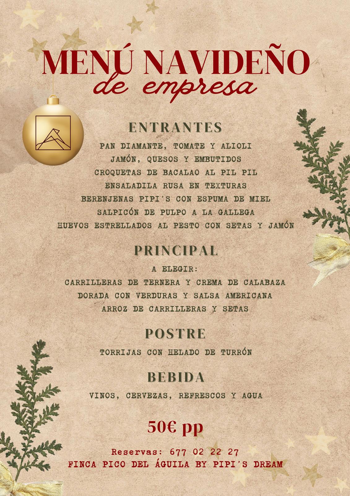Llega una de las épocas más especiales del año en la que disfrutamos de la compañía y de la buena comida, hablamos de la Navidad y de sus múltiples eventos, por el momento, la Finca Pico del Águila tiene preparado los siguientes menús para que puedas disfrutar de cada uno de los días más especiales de la Navidad: