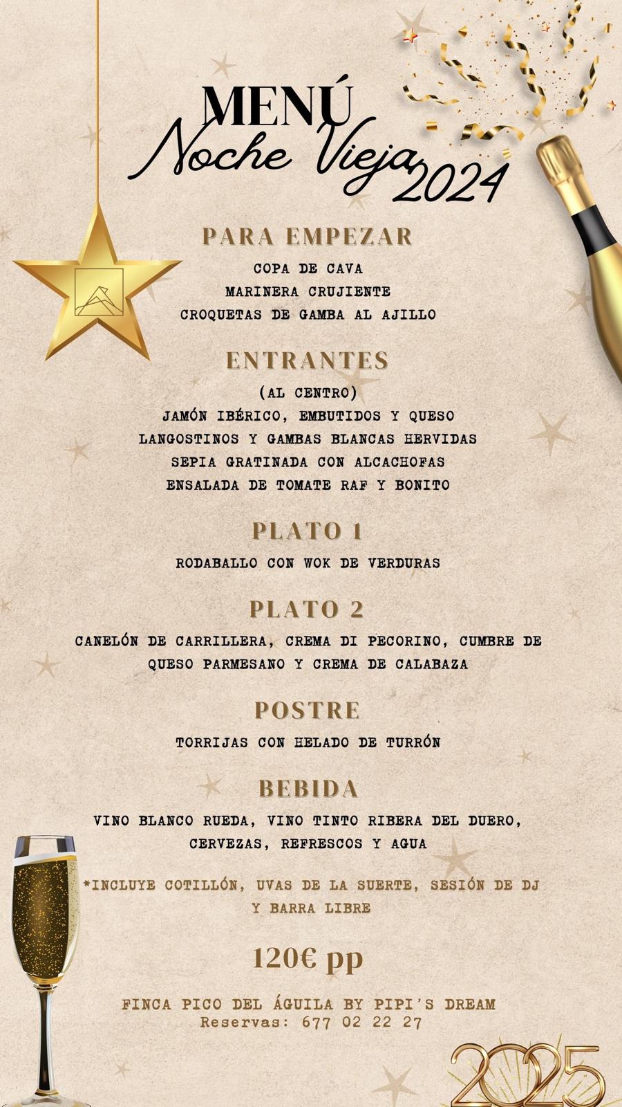 Por último, llega la noche más mágica del año y que hay que celebrar por todo lo alto, la Nochevieja. Una noche donde el lujo en el ambiente y, por supuesto, en la gastronomía se reflejarán en cada detalle de la Nochevieja organizada por la Finca Pico del Águila. Para ello han elaborado un menú especial compuesto por un picoteo de bienvenida, cuatro entrantes, dos platos principales, postre y bebida. Por supuesto, la noche también incluye el cotillón, las uvas de la suerte, un ambiente increíble con DJ hasta las 5 de la mañana y barra libre, por 120 euros por persona.
