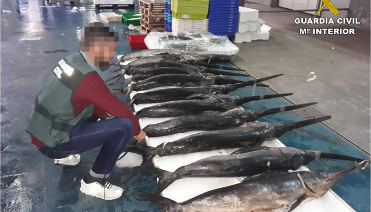 La Guardia Civil de Alicante ha incautado cerca de media tonelada de productos pesqueros no aptos para el consumo humano, que estaban a la venta en los puertos de Alicante y de Santa Pola. Se trata de 333 kilos de pez espada que han tenido que ser destruidos y 161 kilos de pulpo de roca que no alcanzaban la talla mínima exigible.