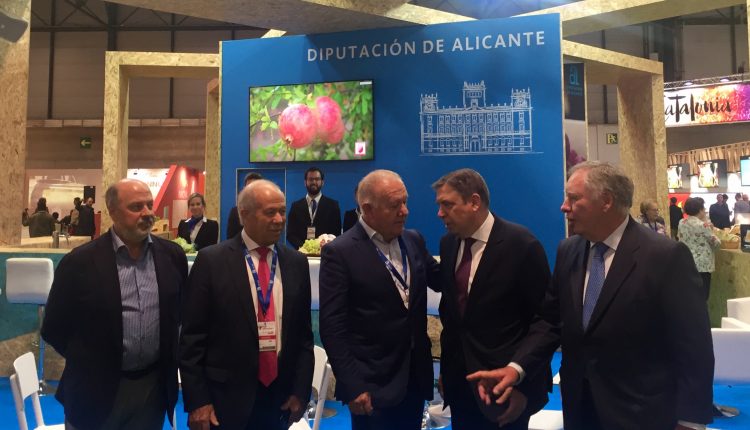 La Diputación de Alicante difunde estos días la riqueza agrícola de la provincia en el certamen internacional Fruit Attraction, la feria del sector de frutas y hortalizas que se celebra hasta el 24 de octubre en Madrid. El diputado de Desarrollo Económico y Sectores Productivos, Sebastián Cañadas, ha asistido esta mañana a la inauguración de este evento que ha calificado como “un escaparate excepcional para mostrar la variedad y calidad de productos tan representativos de nuestra tierra como la uva, las cerezas, la granada mollar o la alcachofa”.