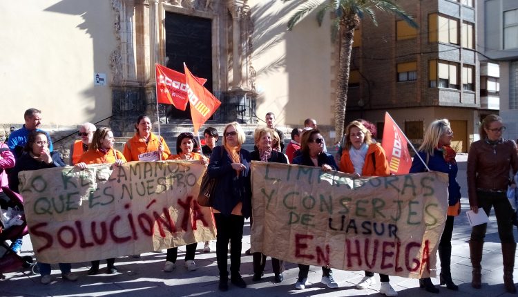 Poco ha cambiado la situación de las limpiadoras y conserjes de Albatera, en huelga desde el lunes 6 de noviembre. La empresa Liasur S.L se encuentra en suspensión de pagos y Hacienda tiene retenida la fianza de 129.000 euros, por lo que lo más probable es que no cobren hasta dentro de unos meses a través del FOGASA.