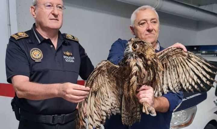 En una balsa de riego se encontraba herida y dentro del agua un búho real que ha sido rescatado por la Sociedad de Cazadores de Albatera quien lo ha trasladado a las dependencias de la Policía Local de Albatera para posteriormente ser recogido por el Centro de Recuperación de Fauna de la Generalitat Valenciana.