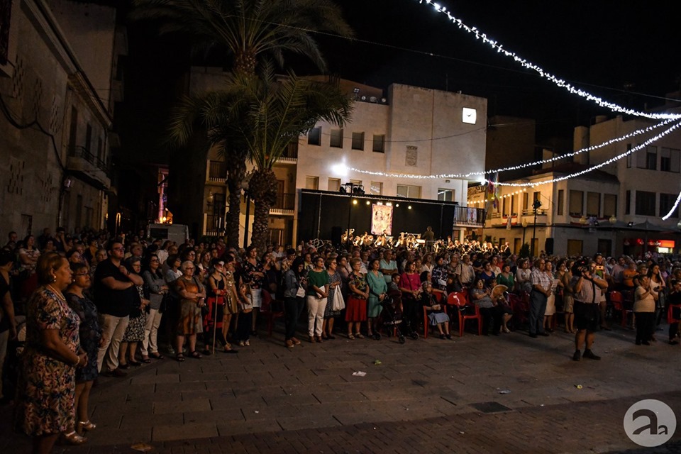Organizado por los costaleros de santiago, la cofradía Cristo de la Buena Muerte, Unión Musical La Aurora y la Hermandad de la Virgen del Rosario. Un acto cargado de emoción cuyo colofón puso la Unión Musical La Aurora con su concierto en honor a la patrona.