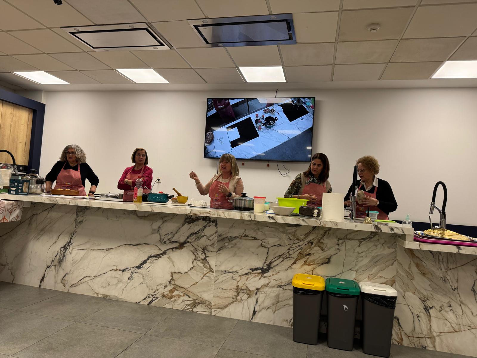 Durante la jornada, las amas de casa albaterenses participaron en un showcooking en el que presentaron algunos de los platos más representativos de la cocina de Albatera, como el caldo colorao, el plato ligero o la original tortada de palomitas, despertando gran interés entre los asistentes.