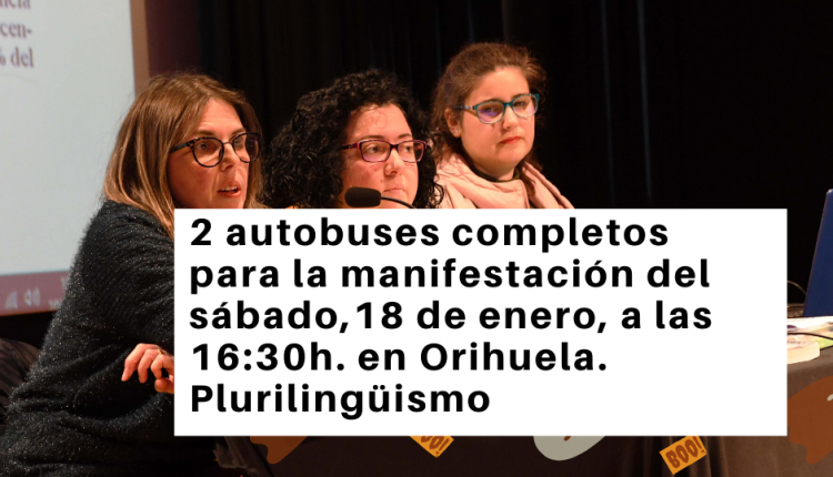 Las AMPAs de los centros educativos de Albatera han informado que ya tienen completos dos autobuses para la manifestación del sábado, 18 de enero, a las 16:30 horas en Orihuela, y que han puesto un tercer autobús ante la demanda de padres y madres para participar en la manifestación.