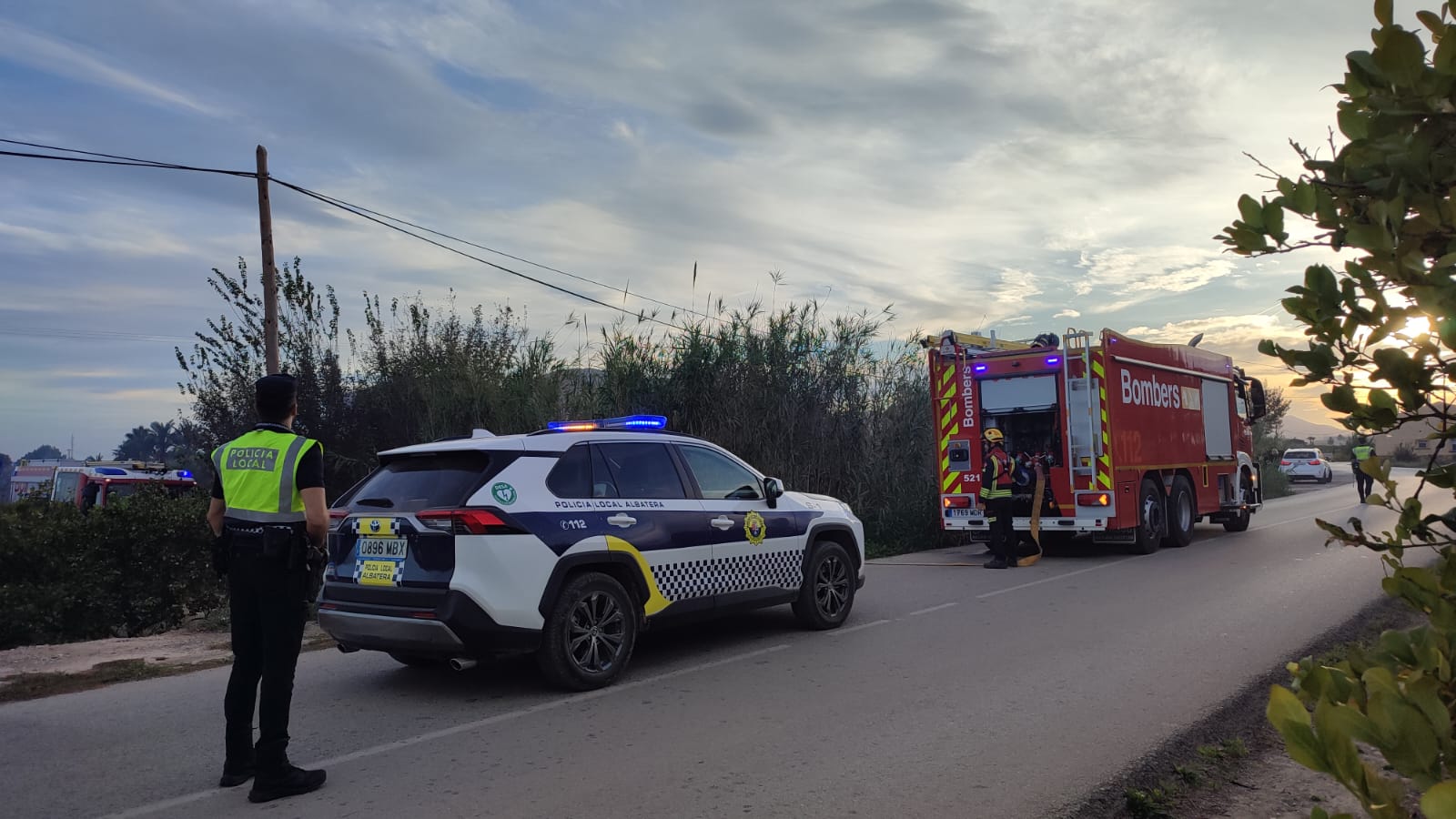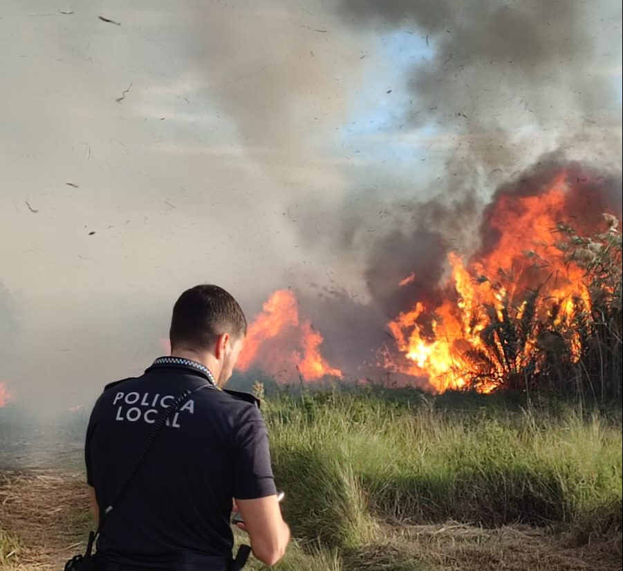 El aviso se produjo en torno a las 16:40 horas, cuando agentes de la Policía Local de Albatera detectaron una columna de humo en la zona. Según fuentes policiales, las llamas afectaron a una superficie de cañas y matorral, propagándose con gran virulencia debido a las fuertes ráfagas de viento.