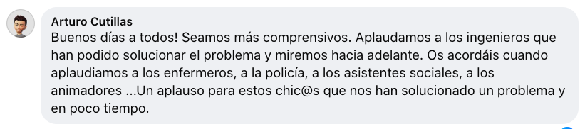 Comentarios publicados en las redes sociales de Albatera Actualidad y Cooperativa Eléctrica Benéfica Albaterense que muestran como ven a los vecinos y vecinas de Albatera este hecho, que por otro lado, estos comentarios, en su momento, pueden ayudar, no los de los hater, que los hubo y muchos.