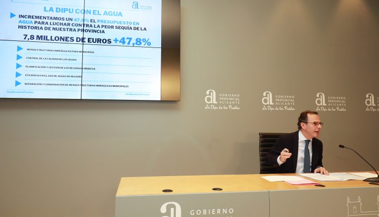 La Diputación de Alicante contará en 2018 con un presupuesto total de 196,1 millones de euros y primará el gasto social así como las inversiones en materia de agua para hacer frente a la sequía, según ha destacado hoy el vicepresidente y diputado de Economía, Carlos Castillo, durante la presentación de las cuentas de la institución provincial para el próximo ejercicio.