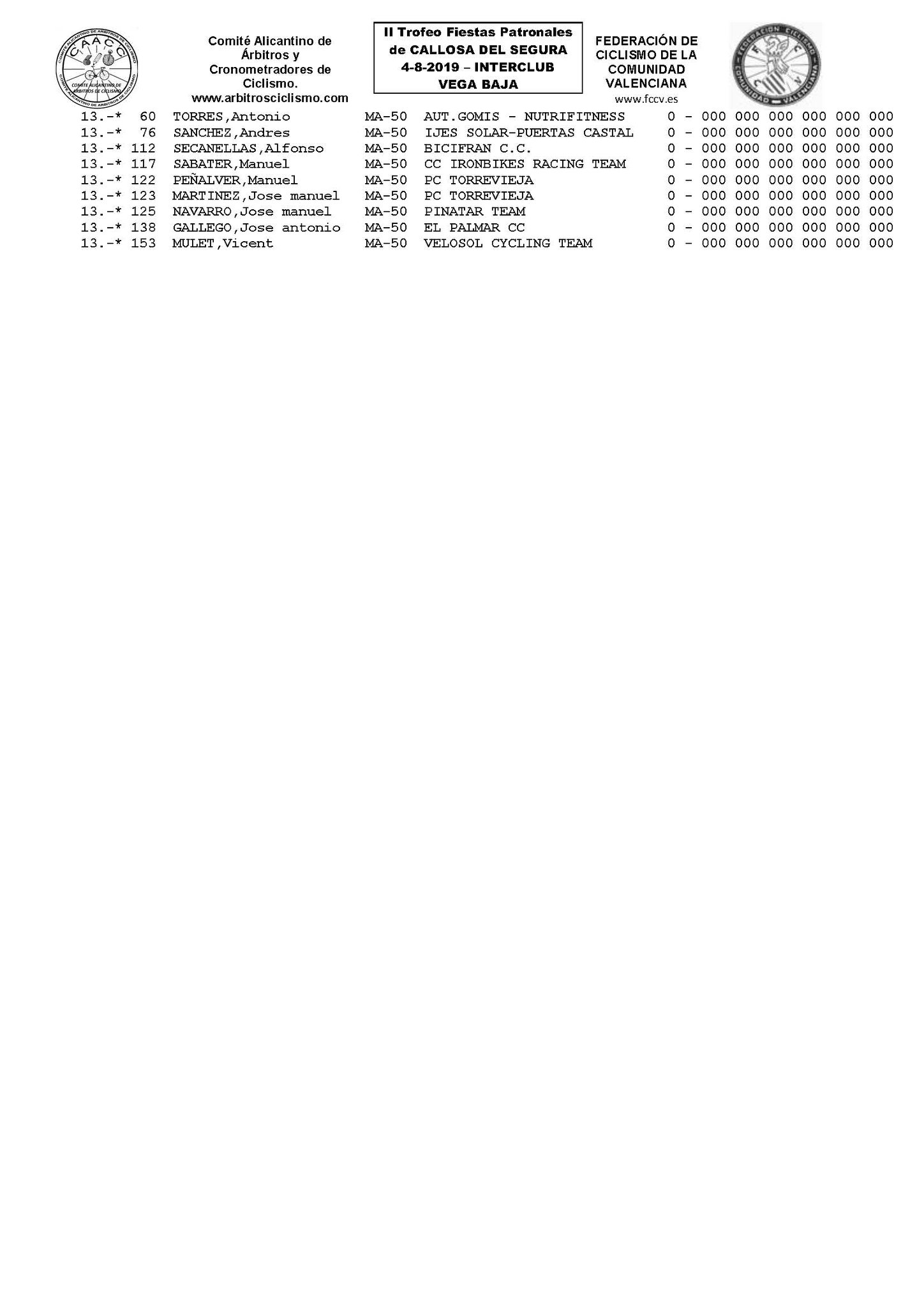 Callosa de Segura ha acogido esta mañana la última prueba de la Interclub de Ciclismo Vega Baja 2019 después de las cinco pruebas disputadas en Granja, Benejuzar, Catral, Cox y Albatera.