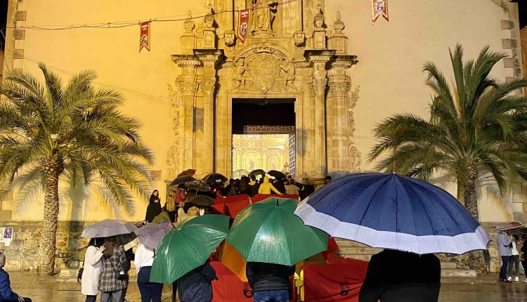 Con las imágenes dentro del templo realizaron una estación de penitencia ante la mirada atónita con lagrimas en los ojos de los cofrades y vecinos que aguantaron bajo la lluvia a la espera de que hubiese dejado de llover.