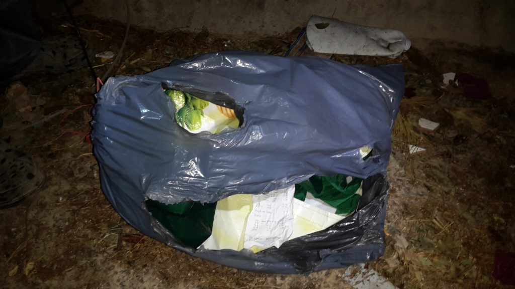 Los agentes que se encontraban en ese momento realizando la patrulla nocturna se acercaron hasta el lugar y comprobaron que se trataba de un perro de tamaño pequeño. El animal, tal y como se ve en la siguiente imagen, estaba dentro de una bolsa de Mercadona, imposible de romper para poder escapar. Tras echar un vistazo a la bolsa, la policía encontró un ticket de compra dentro, por lo que iniciaron las investigaciones pertinentes para dar con la persona que cometió el delito.