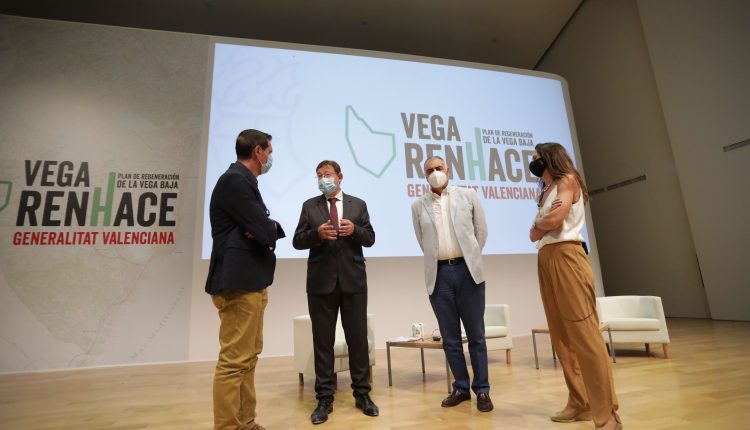 El president de la Generalitat, Ximo Puig, ha desgranado las líneas fundamentales del Plan Vega Renhace y ha anunciado que el proyecto contempla la creación de la Oficina Vega Renhace como órgano de coordinación de una estrategia integral para la resiliencia de la comarca de la Vega Baja.
